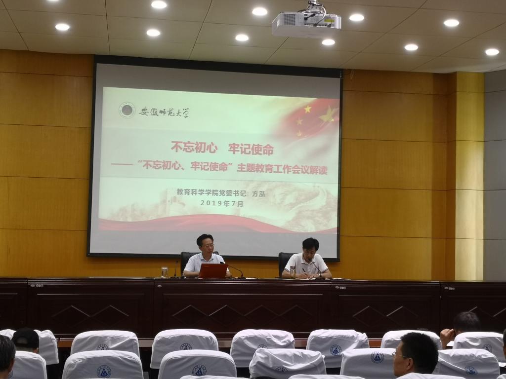 本网讯(教科院 袁黎平/文 莫大贡/图)7月22日下午,365英国上市官网召开教职工大会,集中学习“不忘初心、牢记使命”主题教育工作会议精神。学院全体教职工参加会议,大会由院长桑青松主持。