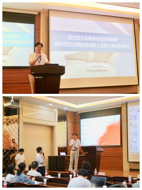 论坛中,我院桑青松教授做了题为《压力性生活事件与青少年自尊:被动性社交网站使用和人生意义感的序列中介》的特邀报告,报告引起在场学者的兴趣和关注,桑青松教授就现场学者的提问进行了解答和互动,并主持了26日下午的主会场论坛,展示了安徽省心理学人的风采,扩大了安徽师范大学心理学科在学术领域的影响。与会的博士研究生代表聆听了大会报告,与有关心理学专家学者进行了深入交流,了解学习了心理学的前沿发展动态和研究方法,有助于明确博士研究阶段的发展方向和发展目标。