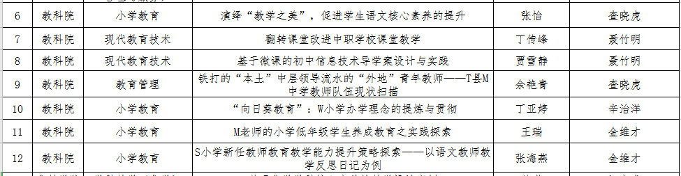 (本网讯 陈秋月)近日我校作为“安徽省教育专业学位案例库和教学案例推广中心”面向全校开展了第4届教育硕士专业学位教学案例征集工作,经专家组评议,评选出优秀教学案例19篇,案例经修改后拟入安徽省教育专业学位案例库。我院小学教育、教育管理、现代教育技术专业共7篇教学案例成功入选,截止到本届我院共有15篇优秀教学案例入选安徽省案例库。