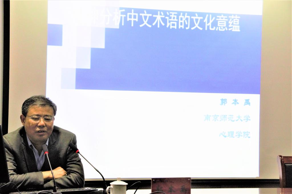 本网讯(教科院 文/吴孟雪 图/曲春璐)12月17日下午,南京师范大学心理学院博士生导师郭本禹教授应邀来我院作“精神分析中文术语的文化意蕴”的主题报告。本次报告于365英国上市官网三楼学术交流中心举行,由院长桑青松教授主持,心理学系相关专业教师及研究生到场学习。