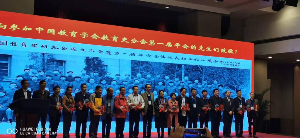 我院孙德玉教授作为“参加中国教育史学会第一届年会”的单位代表上台领取荣誉证书与纪念品。