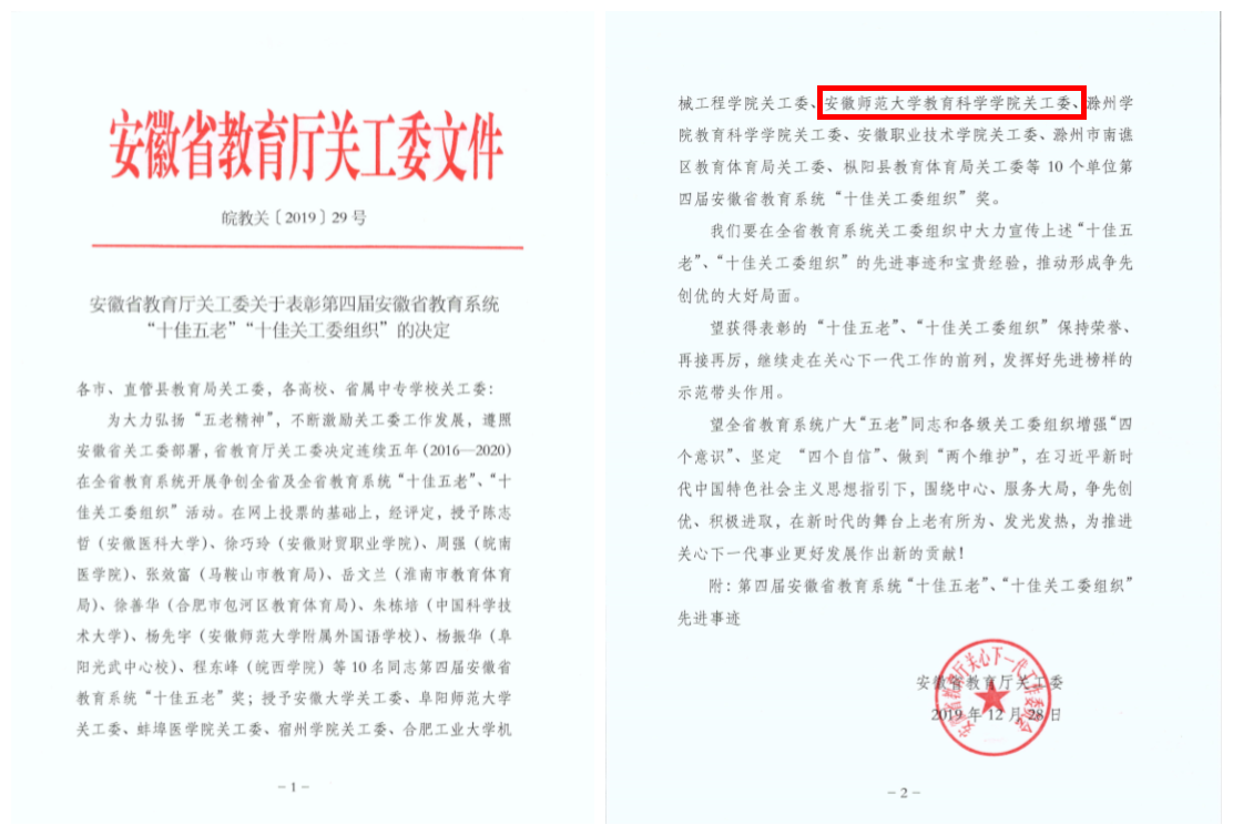 本网讯(教科院 袁黎平 裔艳)日前,安徽省教育厅关工委发布《关于表彰第四届安徽省教育系统“十佳五老”“十佳关工委组织”的决定》,365英国上市官网关工委获评第四届安徽省教育系统“十佳关工委组织”。