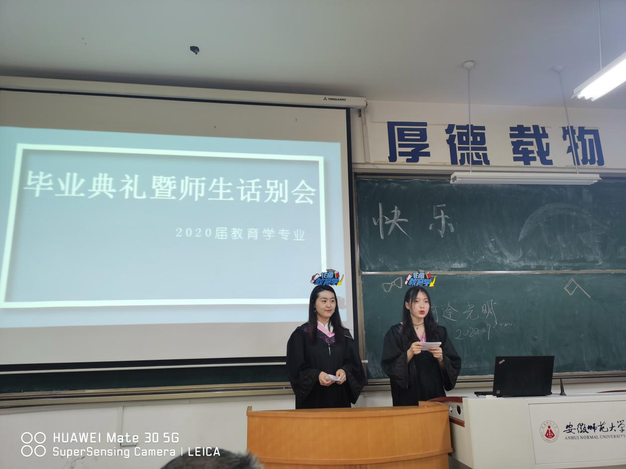 四年时光悄然无息地过去,我们告别了曾经的青涩与懵懂,即将步入社会。无论我们今后是读研还是走上工作岗位,我们都永远不会忘记在安徽师范大学教育学的四年。专业教会了我们做人做事要懂得规范,怎样与他人合作协调以及教我们如何去做一个优秀的教育者。这里有许多我们可爱的老师,不仅向我们传授知识,还培养我们的品德与能力,让我们成为德才兼备的人。天下无不散之筵席,往后的校园里可能不再有我们的身影,但我们在荷园之中定格的青春,还有故事,将在他乡静静地诉说。本次毕业典礼暨师生话别会增进了教育学专业师生的感情,老师们的临别祝福更是激励着每一位同学奋发向上,走出更加宽广的人生道路。