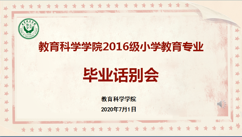 本网讯(教科院 王芳)又是一年毕业季,疫情无情人有情。在学校和学院的精心组织下, 7月1日上午,学院领导、教师与2020届小学教育专业30位同学于田楼广场合影留念;下午2点,小学教育专业师生齐聚8101教室,举行一场充满温情的话别会,为毕业生离校启程送别。