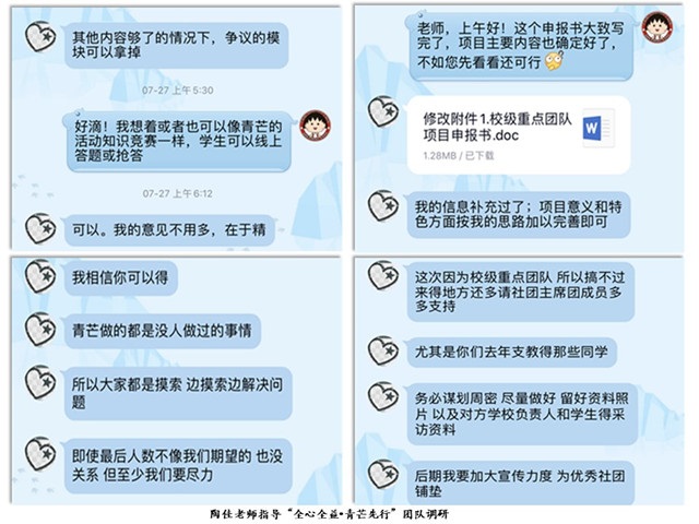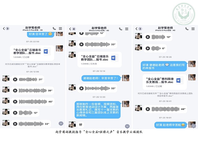 教科院学前教育专业赵学菊副教授以教育社会学及学前教育为主要研究领域与方向,在师大教科院长达7年的学习与26年的教育工作中掌握了完善的教育知识体系,积累了丰富的教学经验。作为“全心全益•弦歌之声”音乐教学云端团队的指导老师,赵学菊副教授时刻关注团队工作情况,及时与团队成员通过QQ语音进行实时沟通,为该团队提供线上指导。赵学菊老师就团队建设、调研进度和撰写报告等方面给予专业建议,鼓励学生深入调研、及时记录,在调研中不断提升专业能力,在实践中实现自我价值。
