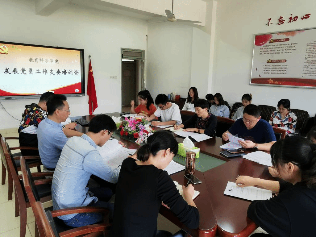 本网讯(教科院 潘亚萍)为做好学生党员发展工作,规范党员发展程序,提高党员发展质量,教科院党委于9月30日下午召开发展党员工作支委培训会,学院党委书记方泓主持会议,全体学生党支部委员、辅导员到会参加培训。