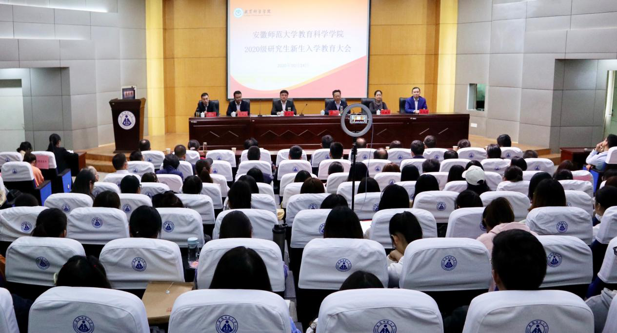 本网讯(文/邸滢瑞 潘雨 图/李琴)2020年10月14日下午两点,我院2020级研究生新生入学教育大会在田家炳教育书院三楼报告厅顺利召开。学院党委书记方泓、院长李宜江、副院长张更立、副院长何海燕、教授委员会副主任方双虎、优秀毕业生代表徐华明出席了此次会议,学院研究生导师、辅导员、研究生各党支部书记、各班班长、部分高年级研究生代表以及全体研究生新生共200余人参会。本次会议由学院党委书记方泓主持。