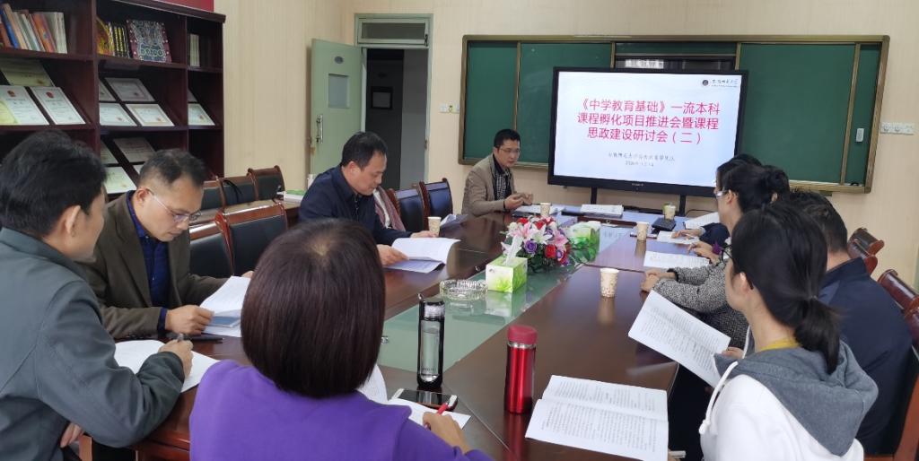 全面推进课程思政建设是落实立德树人根本任务的战略举措,课程思政建设是全面提高人才培养质量的重要任务。《中学教育基础》课程思政建设不仅是申报国家一流本科课程的需要,也是未来课堂教学的趋势,更是满足学生发展的需要。通过本次会议,安徽师范大学公共教育学课程团队进一步完善了融入课程思政元素的教学大纲内容,明确了修改方向,并在诸多方面达成了共识。