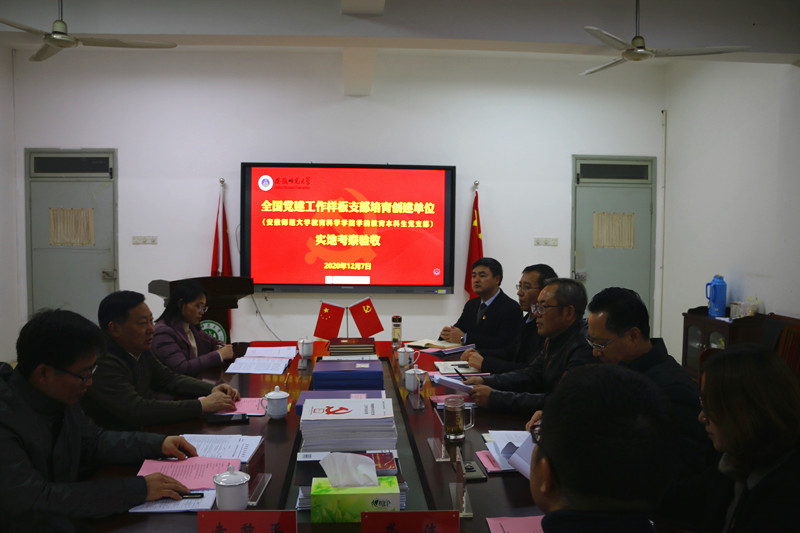 本网讯(教科院 龚伟)12月7日下午,由合肥工业大学党委副书记陈鸿海、合肥工业大学党委组织部副部长宋之帅、皖南医学院党委组织部副部长任苔蓉组成的省委教育工委专家组,对我校首批全国党建工作样板支部培育创建单位365英国上市官网学前教育专业本科生党支部进行了实地考察验收。校党委副书记蒋家平、校党委常委、组织部部长季爱新、学院党委领导班子主要成员出席验收会,支部部分党员参会。会议由校党委副书记蒋家平主持。