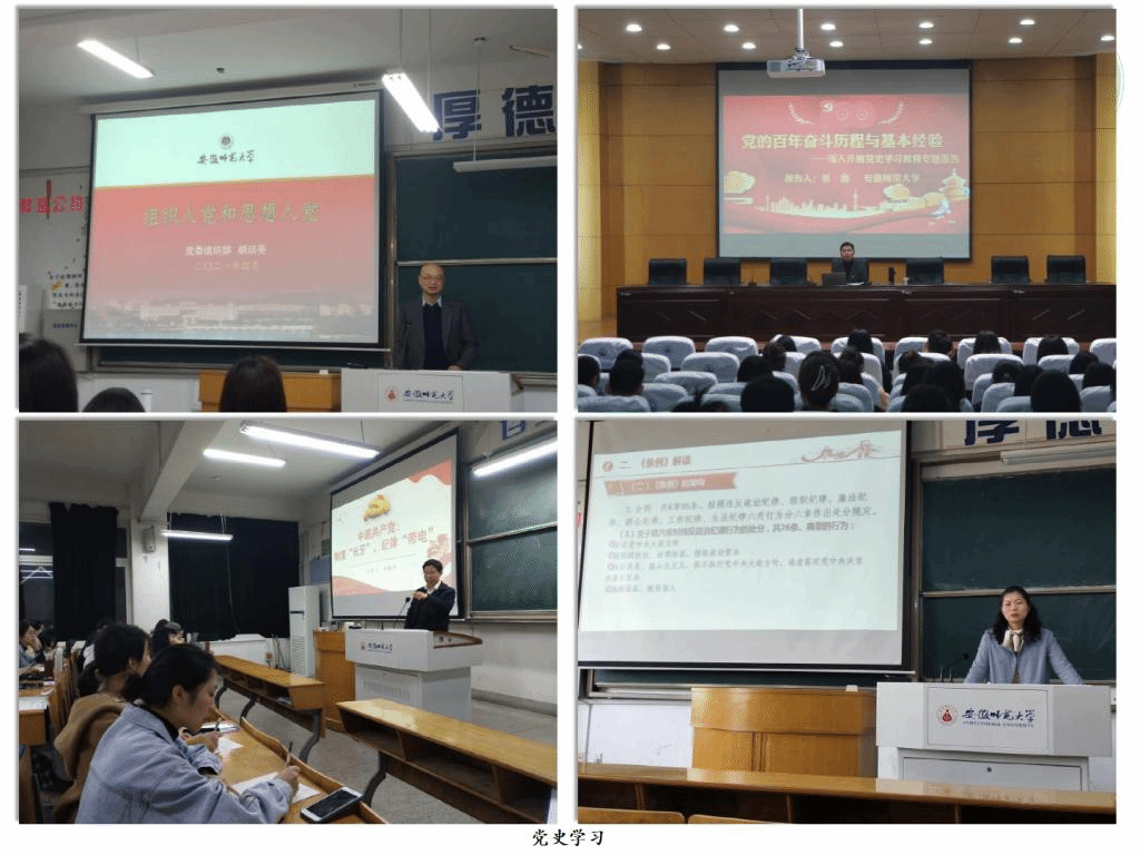 教科院党校邀请多位专家老师为同学们带来精彩丰富的课程。校学生工作处刘晓宇为同学们带来了一堂生动的党课——中国共产党:制度“长牙”,纪律“带电”;校组织部胡培亮向同学们讲授了《思想入党和组织入党》;校统战部李叶青带领大家学习党的纪律:守规矩、讲规矩、做表率;马克思主义学院老师张鑫以《党的百年奋斗历程与基本经验》为主题,带领同学们回顾了中国共产党的辉煌历程。理论课程的学习进一步增强了同学们对党的理论知识的理解,坚定不移地跟党走。