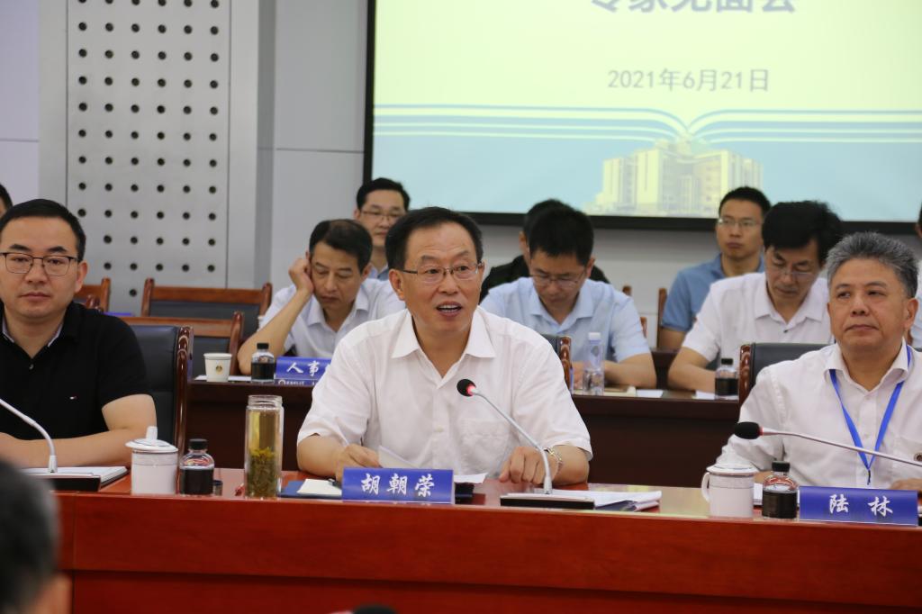 张志东副主任介绍专家组成员,并对本次认证工作的目的、任务和要求做了简要说明。胡朝荣书记对专家组来校表示欢迎和感谢,他简要介绍了学校办学历史和发展定位,胡朝荣强调了我校作为安徽省建校最早的高等学府,93年来学校始终坚持教师教育办学特色,不忘初心,牢记师范大学责任与使命,为国家和社会培养大批人才,尤其是为安徽省培养了一大批中小学校长和名师。他指出学校将以此次认证工作为起点,积极配合,全力做好此次认证工作,不断提升师范专业建设水平,着力培养卓越教师和未来教育家。