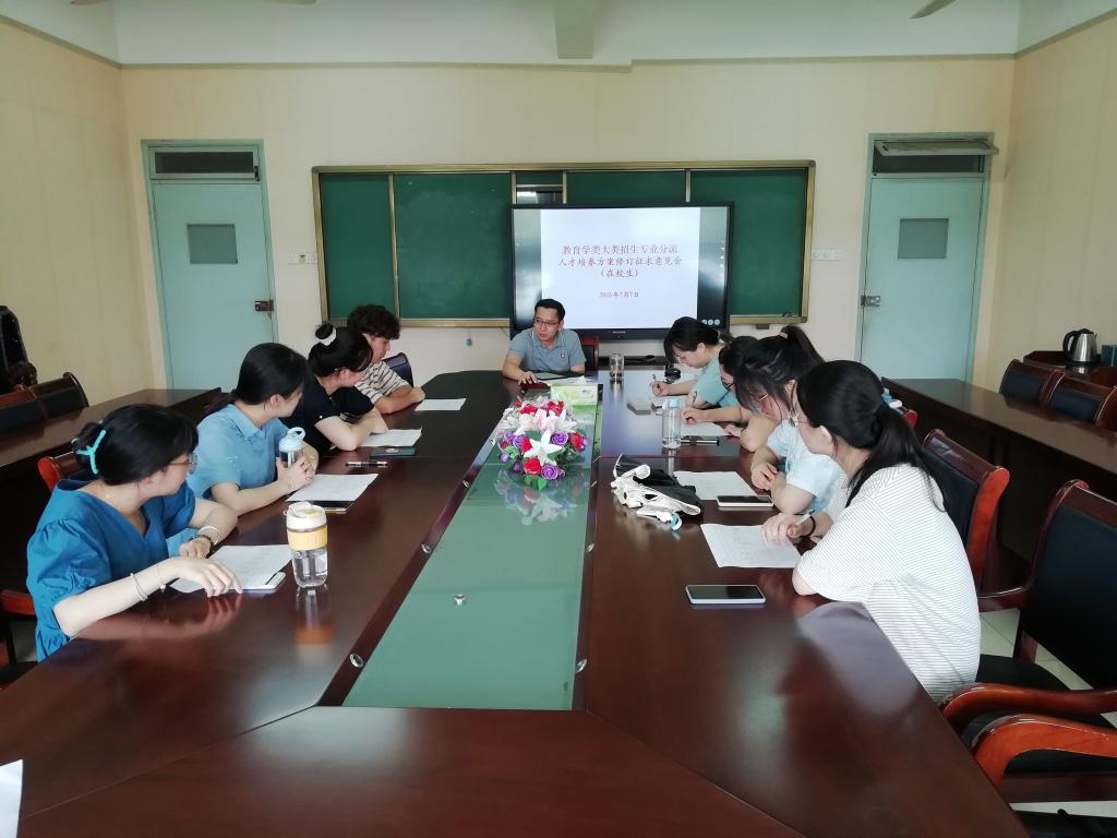 本网讯(文/邓丽 图/吕可)为持续改进教育学专业建设,进一步推进大类招生背景下教育学专业人才培养方案的修订,2021年7月7日上午10点,安徽师范大学教育学专业在教科院408会议室召开在校生的座谈会。参加此次会议的人员有教育学专业负责人徐赟,教育学专业在校本科生代表李雅馨、周洁、袁慧、张洁、吕可、俞晓雨、王晨曦、邓丽、黄跃程。