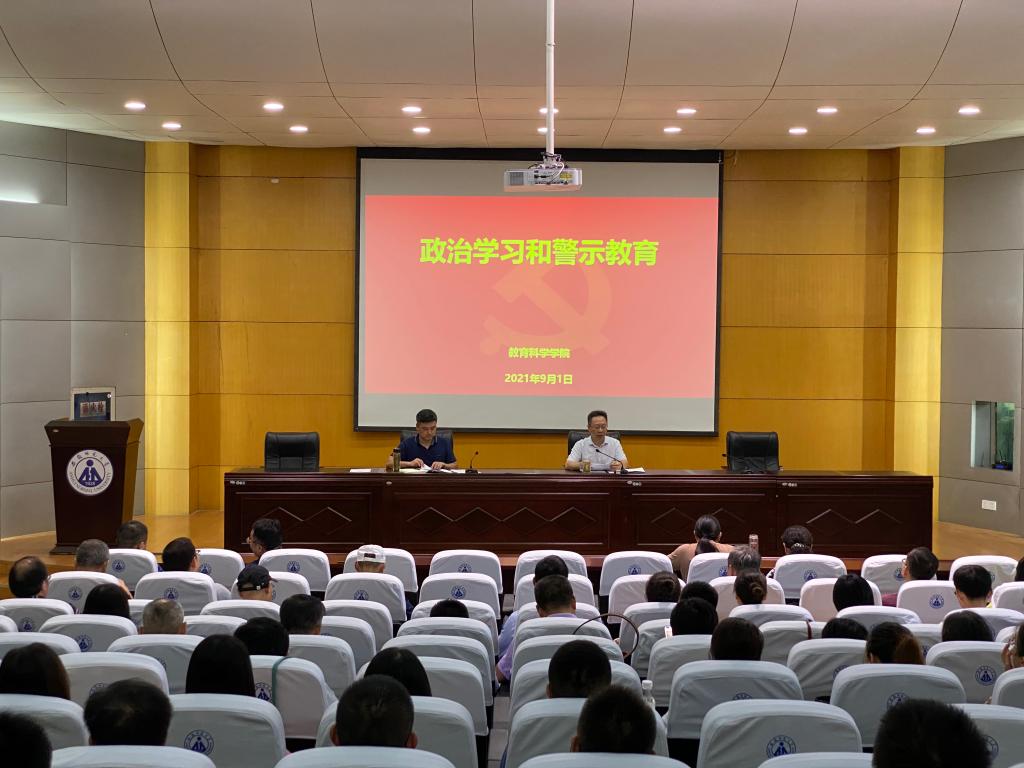 本网讯(教科院袁黎平/文 程啸/图)9月1日下午,教科院召开新学期教职工大会,开展政治理论学习和师德师风专题教育,布置新学期工作。大会由学院党委书记方泓主持,全体教职工参加会议。