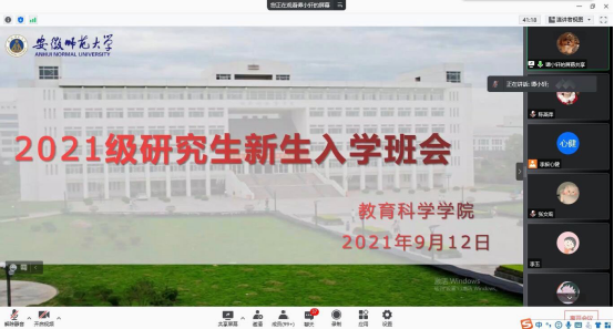 晚上八时,辅导员谭茹轩通过腾讯会议平台召开第一次班会,主要介绍了新生入学注意事项、学业指导、心理健康、校园安全及疫情防控等方面。她鼓励大家积累沉淀、厚积薄发,明确自身发展定位和学术研究规划,合理安排各项工作活动的时间和精力,并预祝大家度过一个充实精彩的研究生生涯。