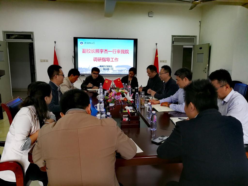 本网讯(教科院 孟庆娟)10月13日上午,副校长熊宇杰在国际教育学院(国际交流合作处)院长(处长)张德让、科研处汪小丽的陪同下,专程来到教科院调研和指导科学研究与国际交流合作工作。院党政领导及教学科研骨干教师代表参加了座谈会。