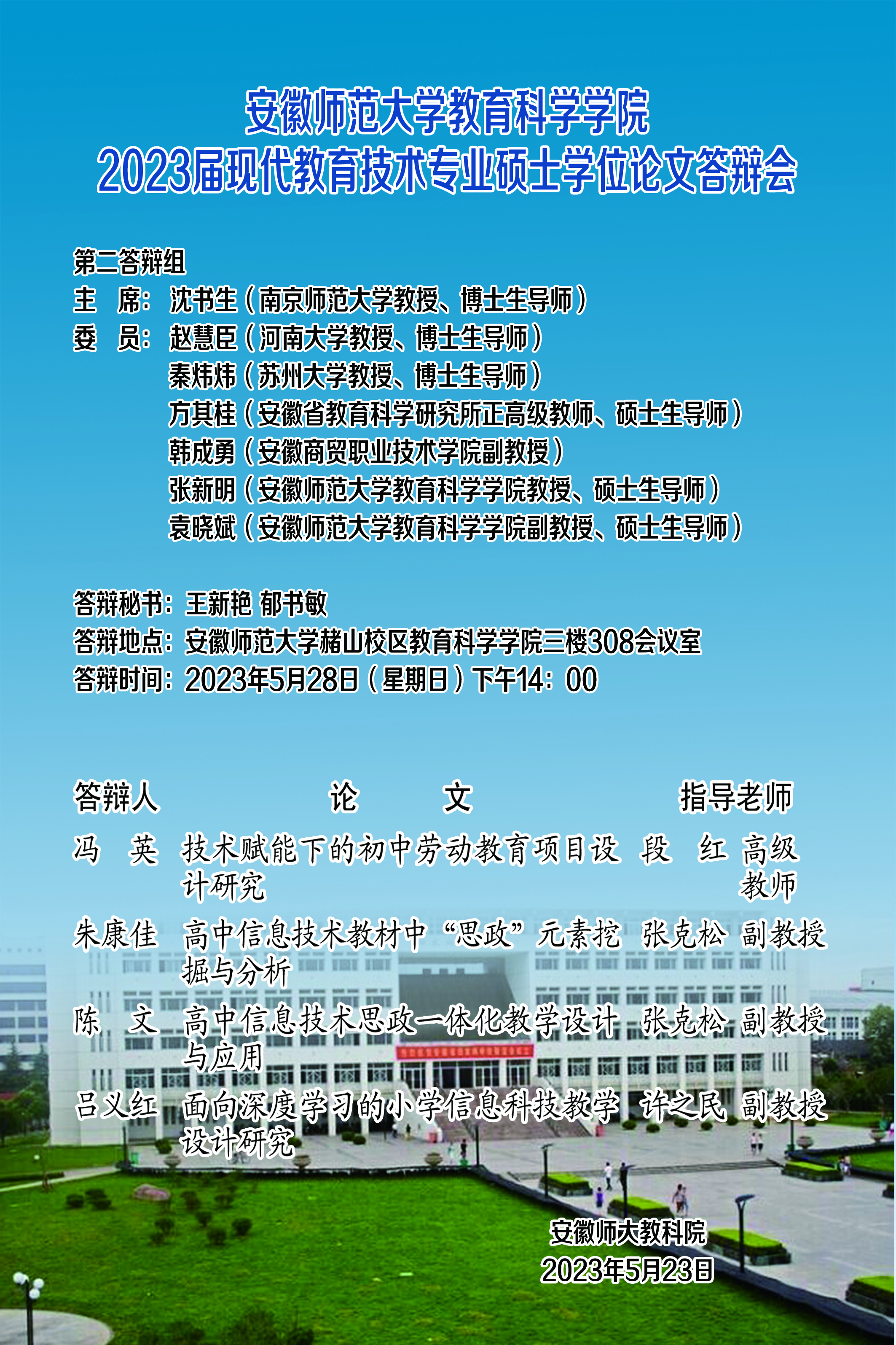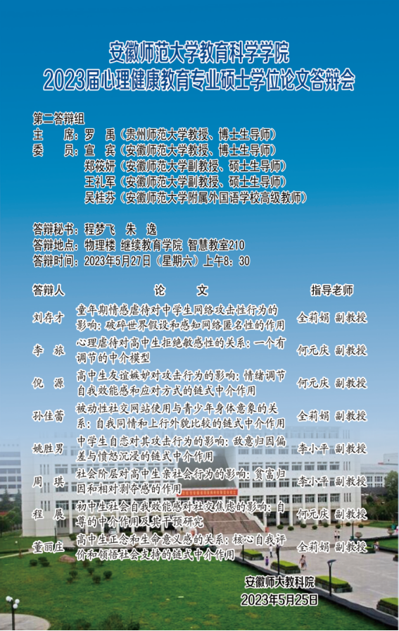 365英国上市官网2023年上半年硕士研究生学位论文答辩公告(三)