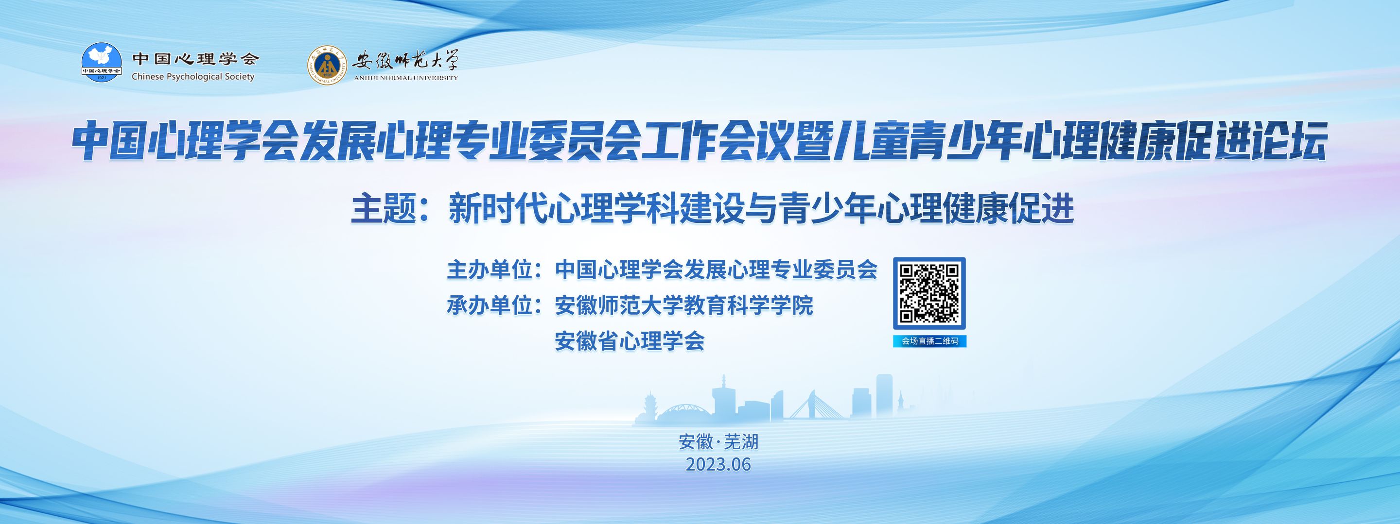 中国心理学会发展心理专业委员会工作会议暨儿童青少年心理健康促进论坛于2023年6月9日至6月11日在安徽芜湖召开。本次会议由中国心理学会发展心理专业委员会主办,365英国上市官网、安徽省心理学会承办。大会组委会热忱欢迎全国从事发展心理及相关学科研究与实践的专家、学者和研究生莅临本次会议。