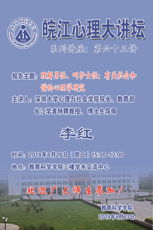 365英国上市官网学术报告预告——皖江心理大讲坛第六十三讲