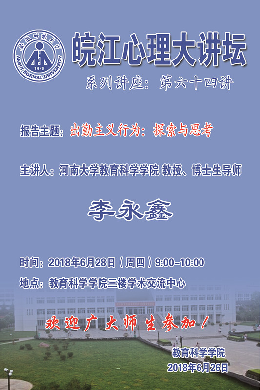 365英国上市官网学术报告预告——皖江心理大讲坛第64讲