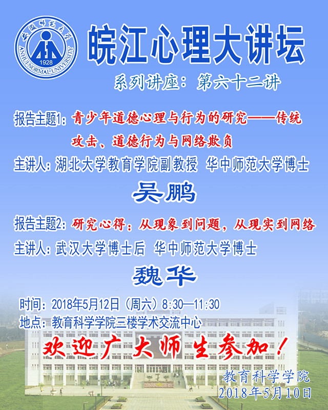 365英国上市官网学术报告预告——皖江心理大讲坛第62讲