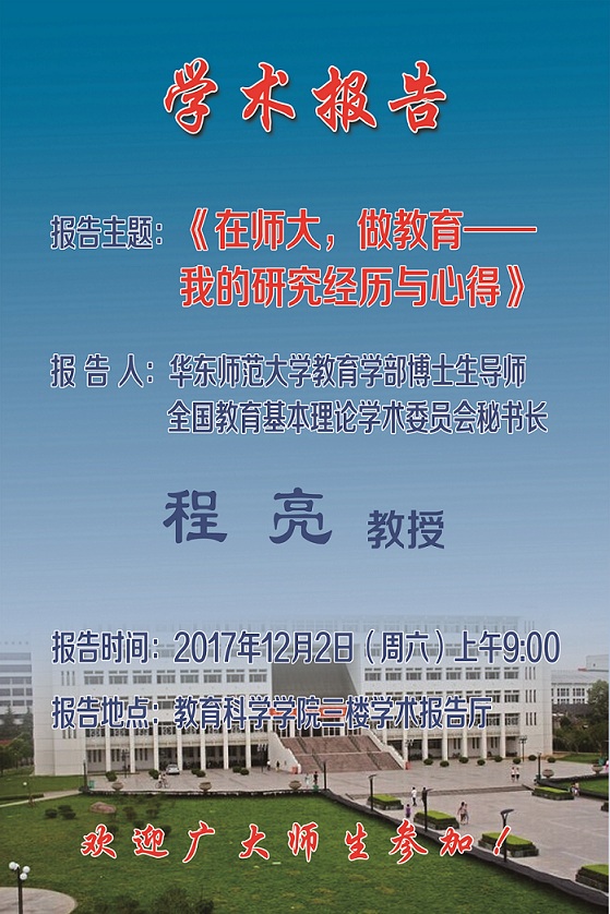 学术报告预告:在师大,做教育——我的研究经历与心得