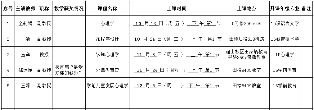 2017-2018学年第一学期本科课堂教学观摩课安排表