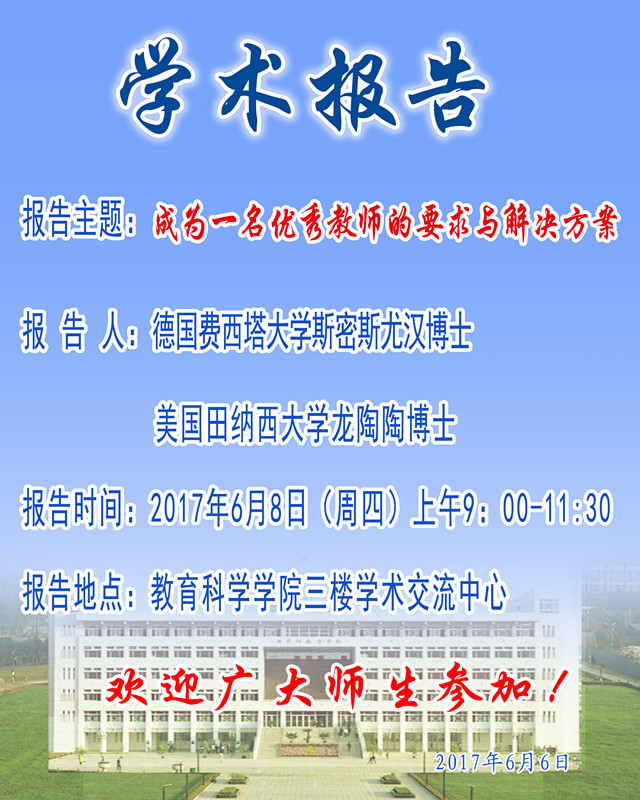 学术报告预告——德国费西塔大学斯密斯尤汉博士、美国田纳西大学龙陶陶博士学术报告