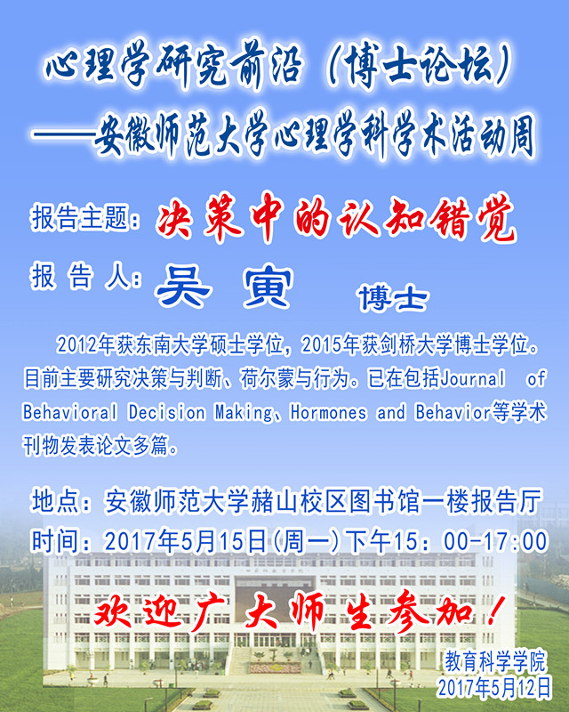 地址:安徽省芜湖市北京东路1号 邮编:241000 联系电话:0553-3869265