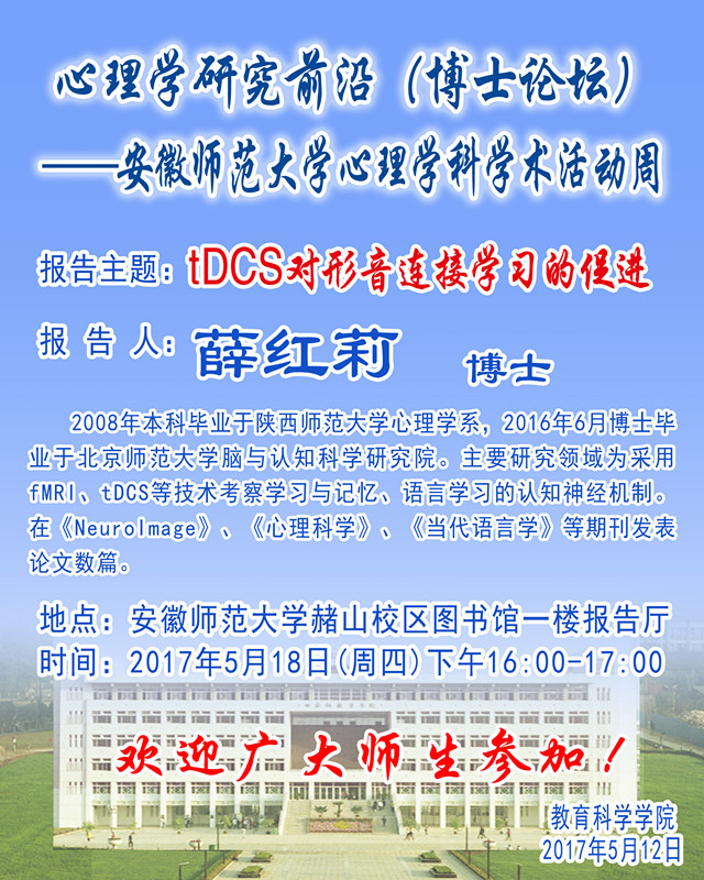 学术报告预告——薛红莉学术报告