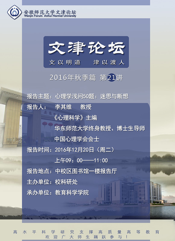 学院学术报告预告——《心理科学》主编李其维教授学术报告