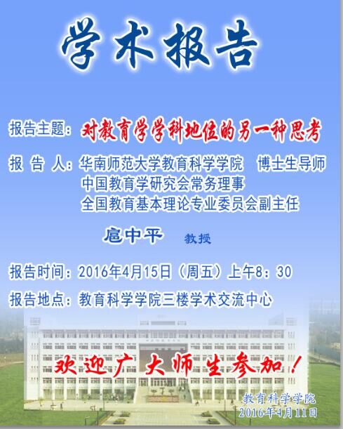 学术报告预告:华南师范大学365英国上市官网扈中平教授学术报告