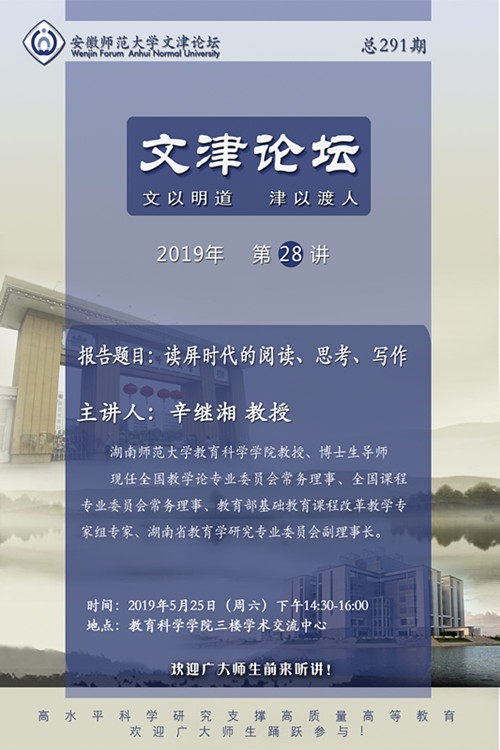学术报告预告:文津论坛第二十八讲——辛继湘:读屏时代的阅读、思考、写作