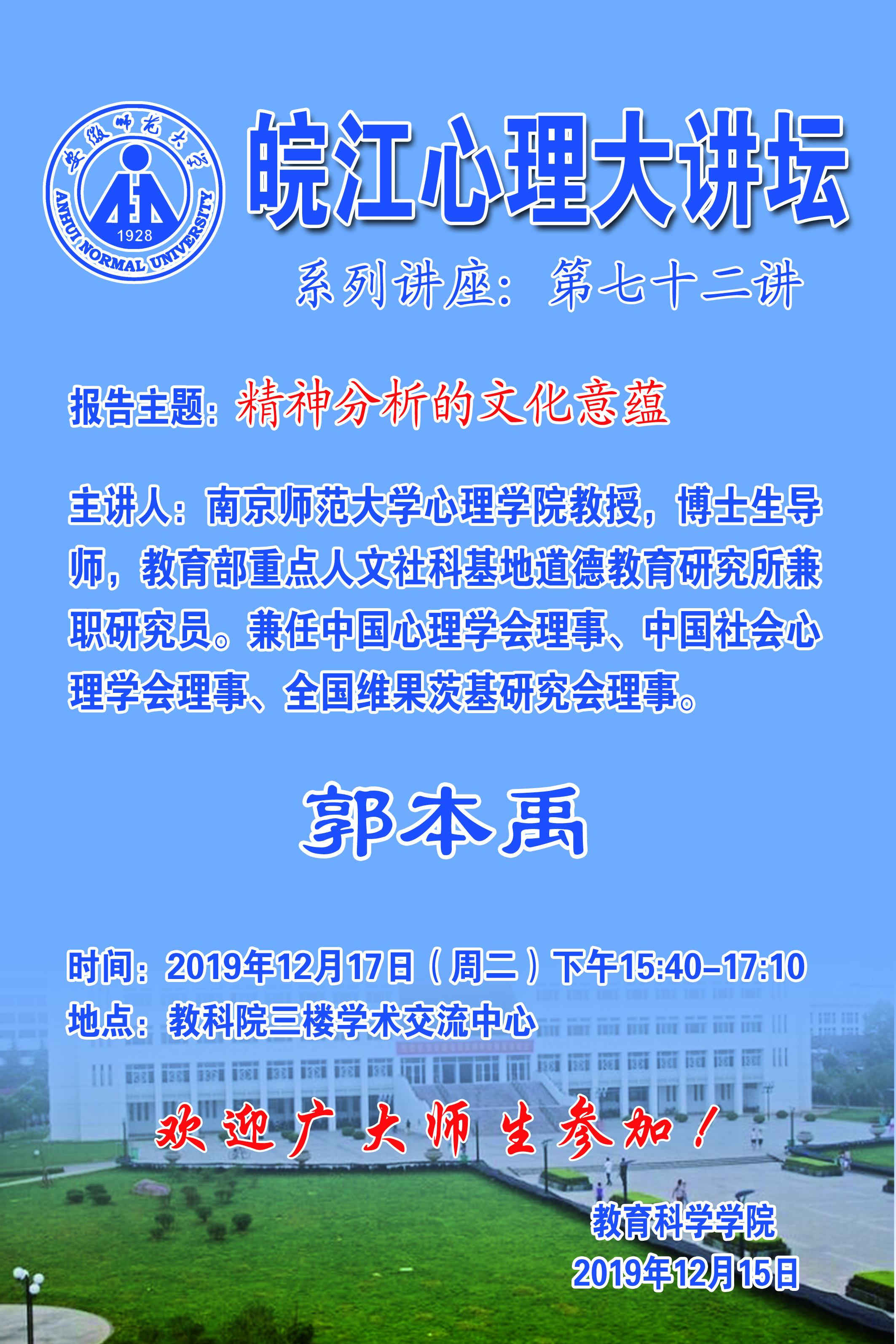 学术报告预告:皖江心理大讲坛第七十二讲郭本禹报告