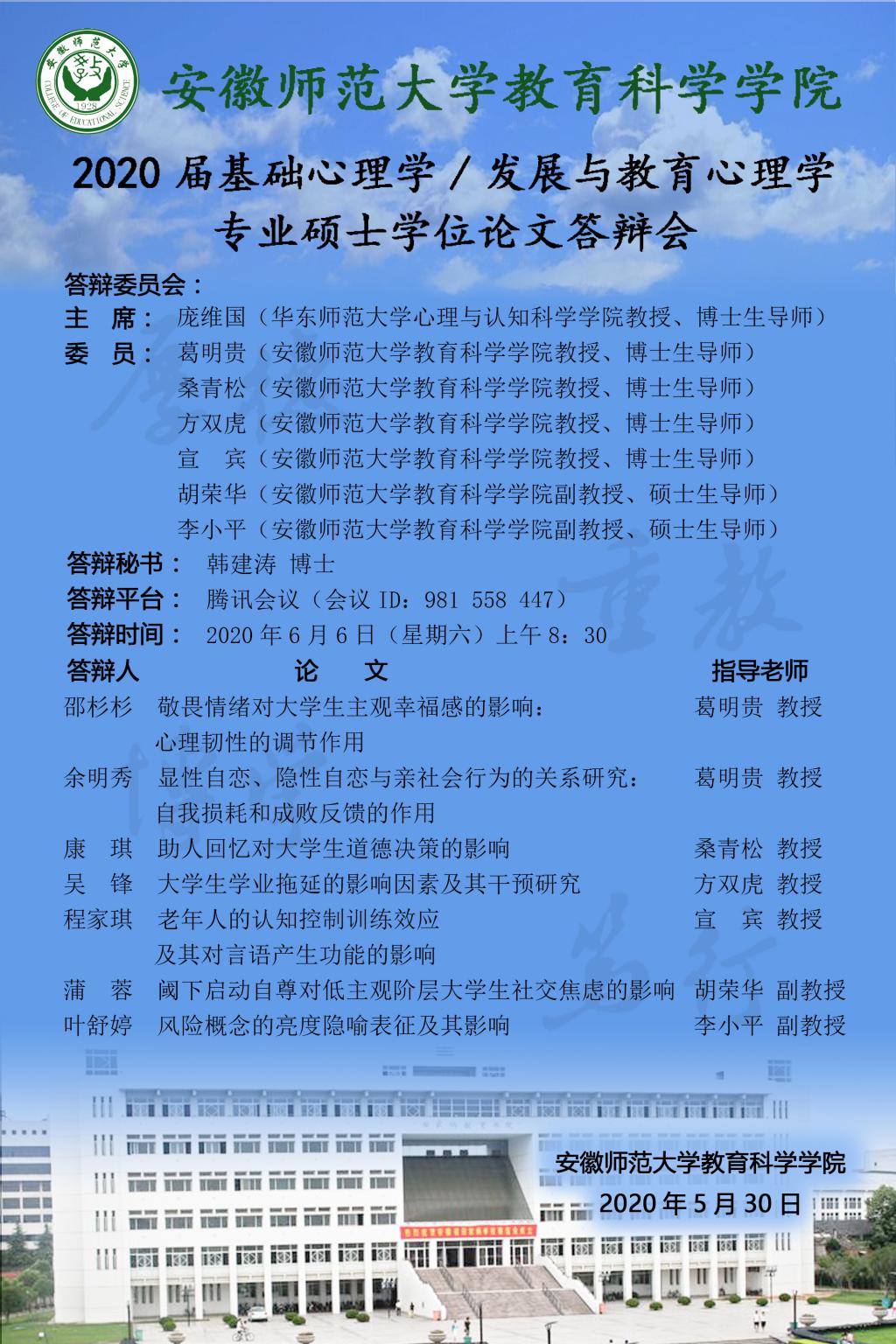 365英国上市官网2020届基础心理学/发展与教育心理学专业硕士学位论文答辩会