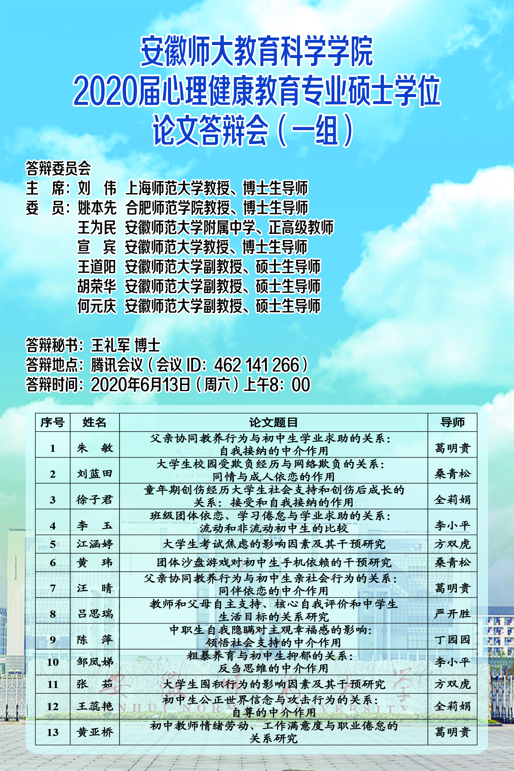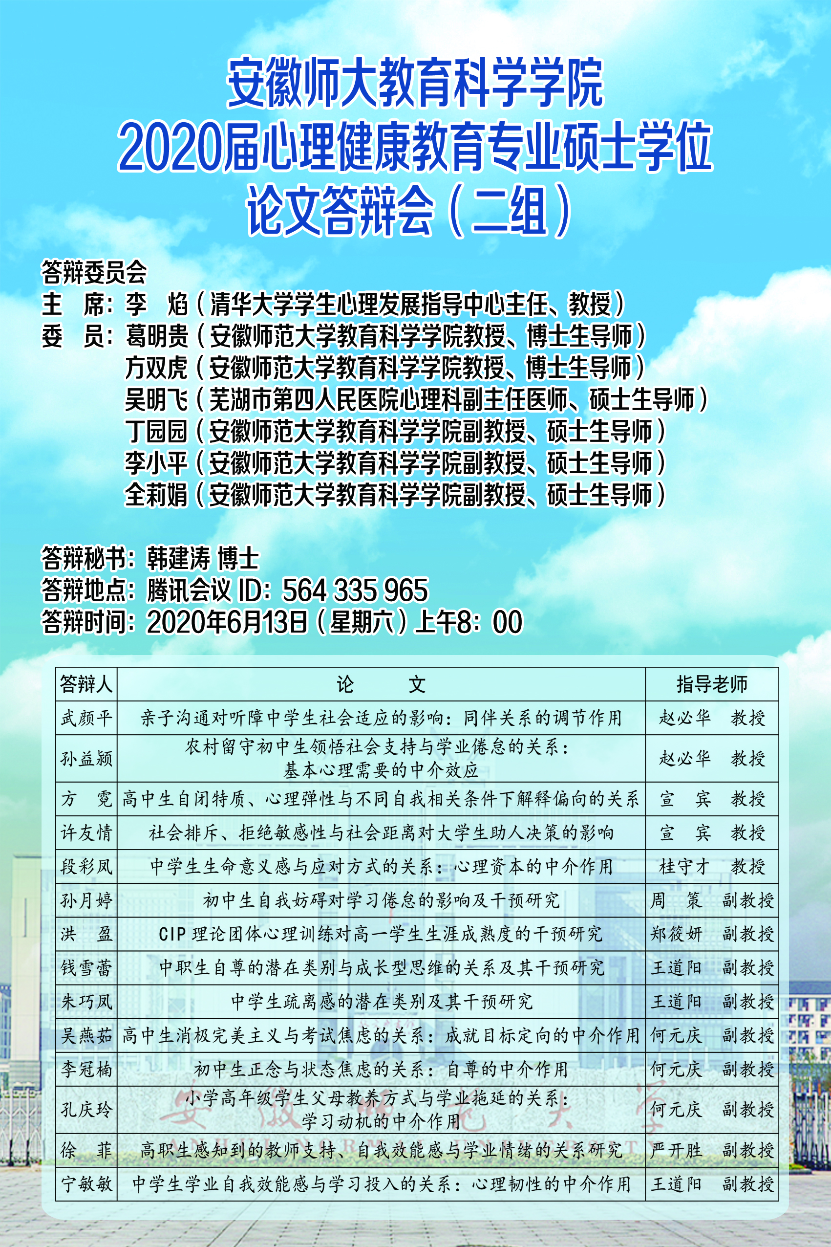 365英国上市官网2020届心理健康教育专业硕士学位论文答辩会