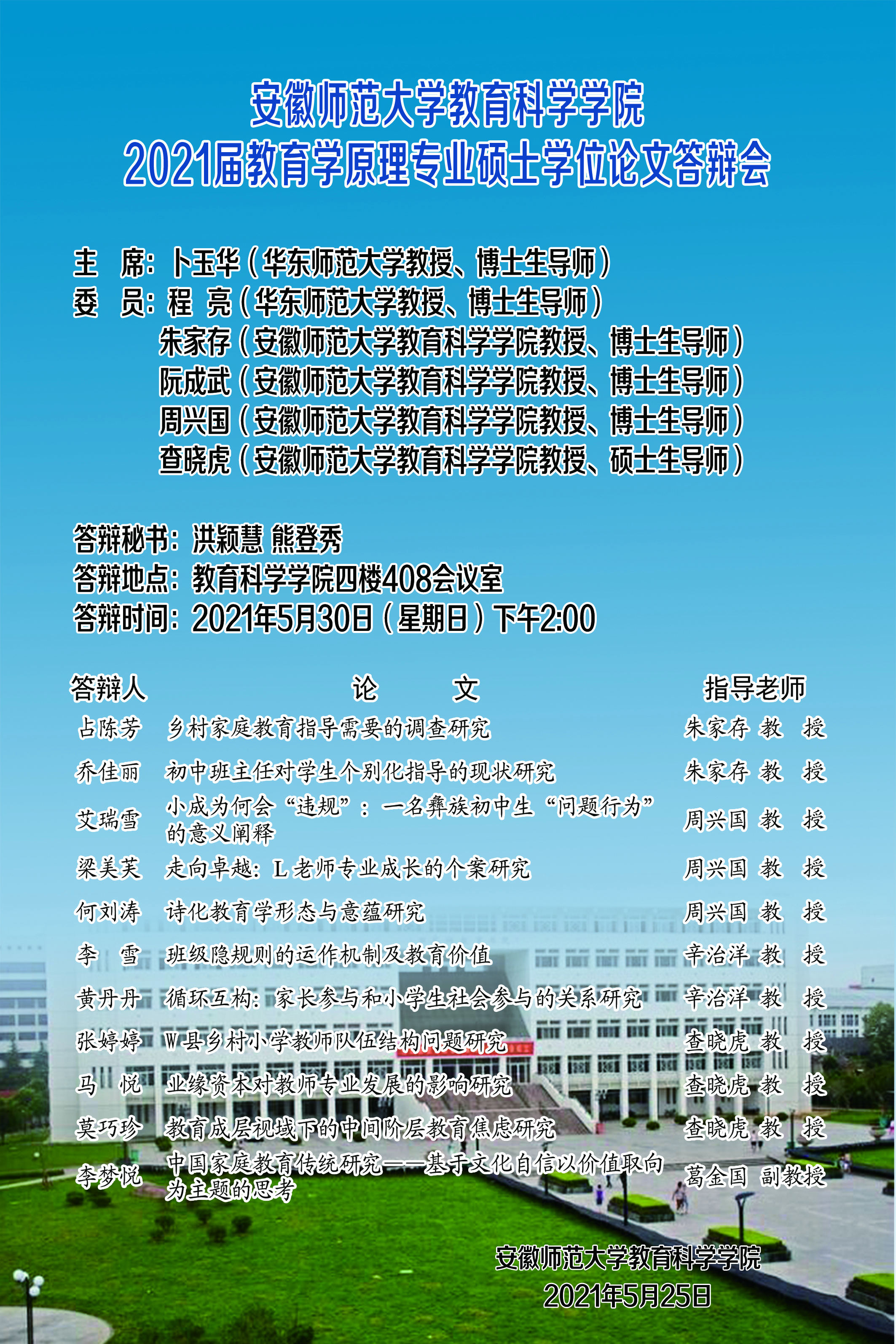 365英国上市官网2021届教育学原理专业硕士学位论文答辩会