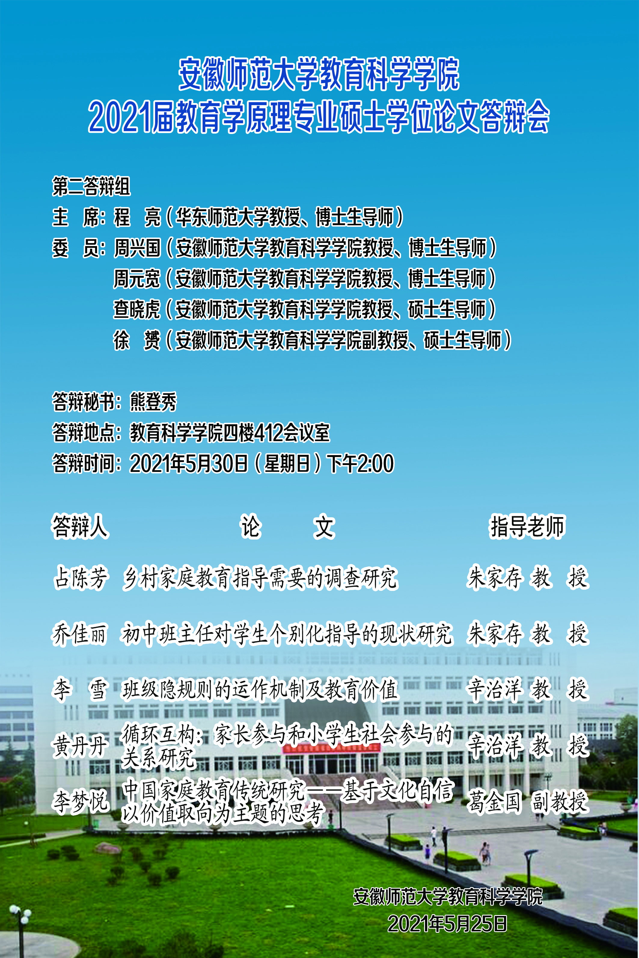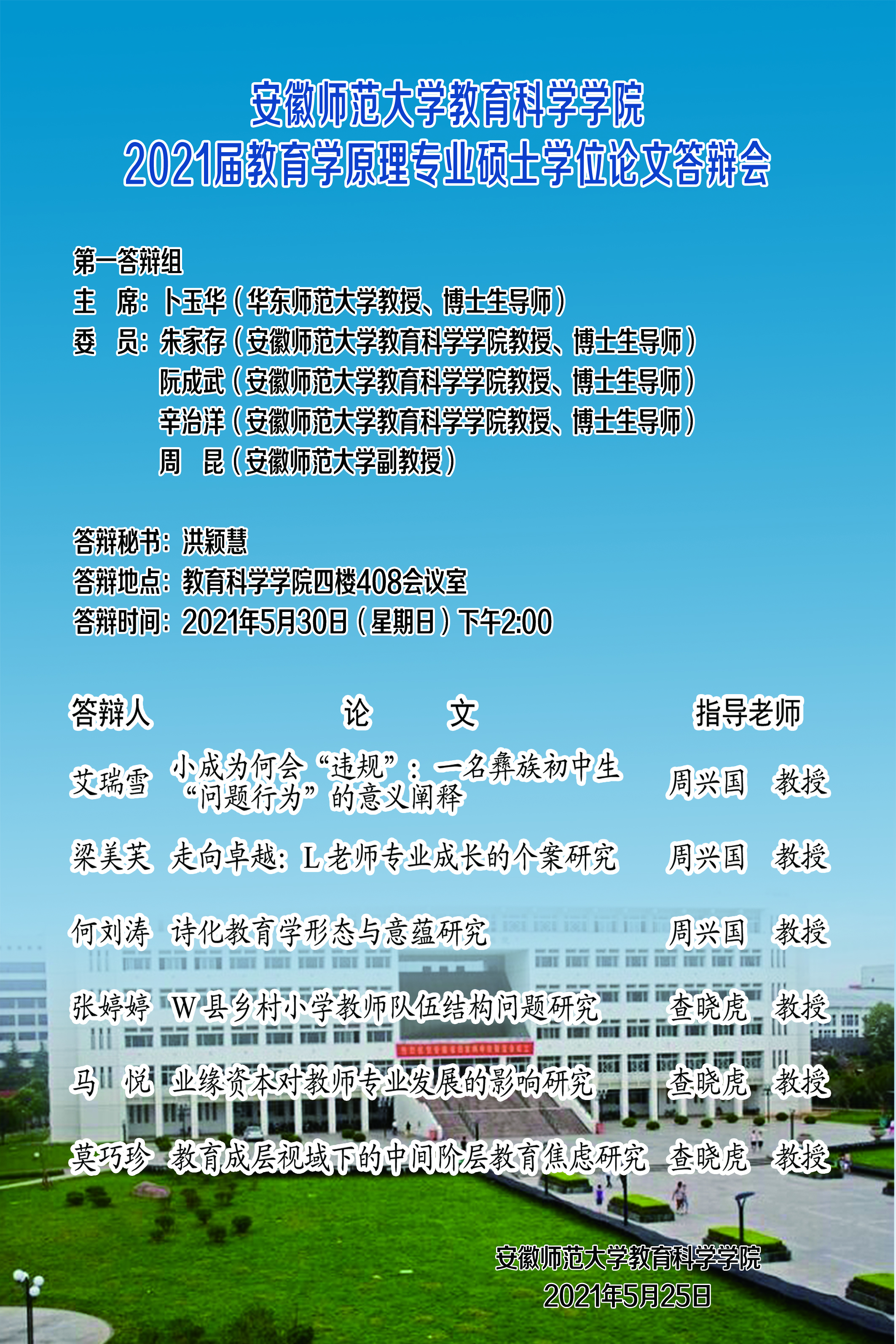 365英国上市官网2021届教育学原理专业硕士学位论文答辩会