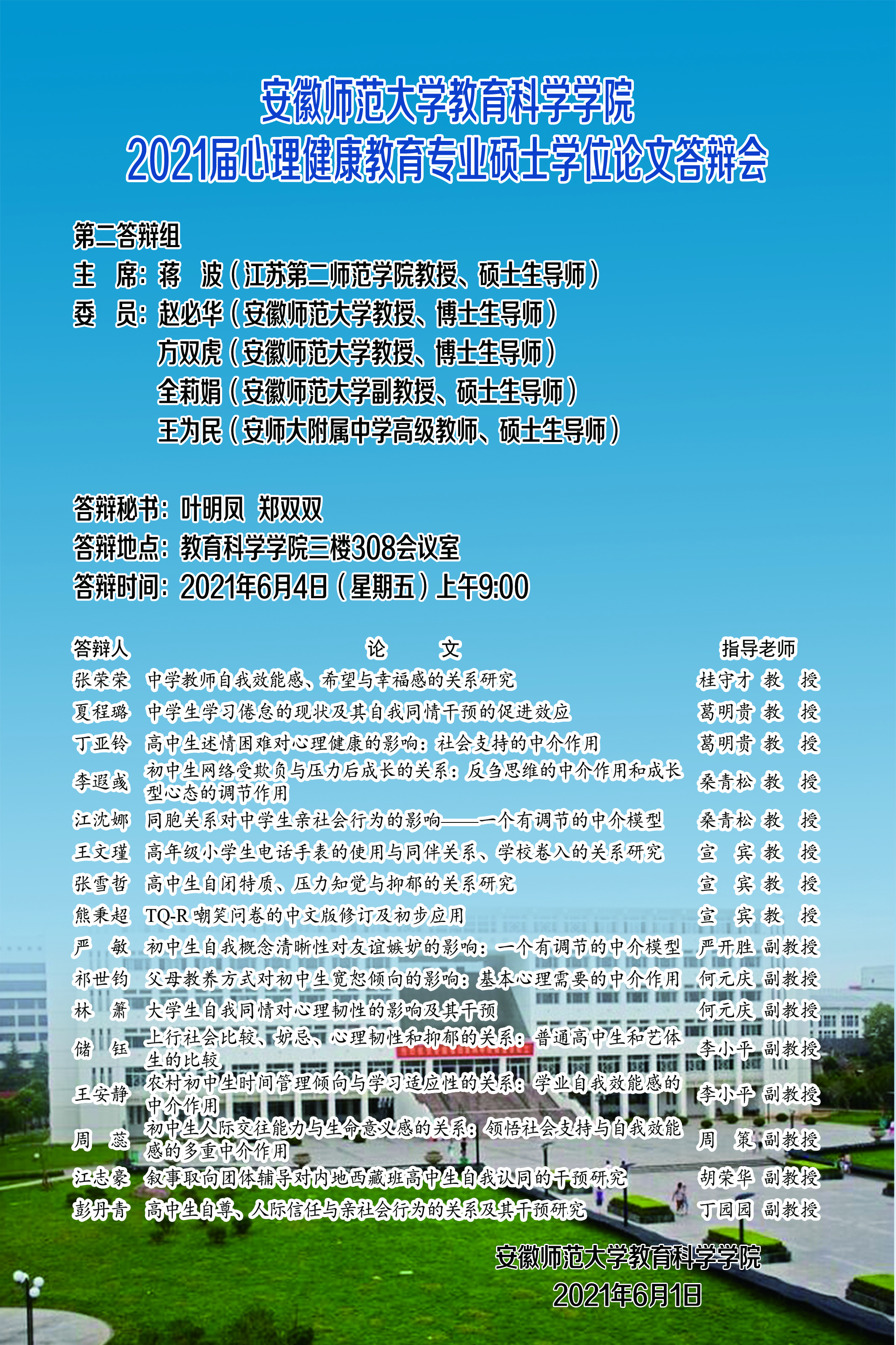 365英国上市官网2021届心理健康教育专业硕士学位论文答辩会