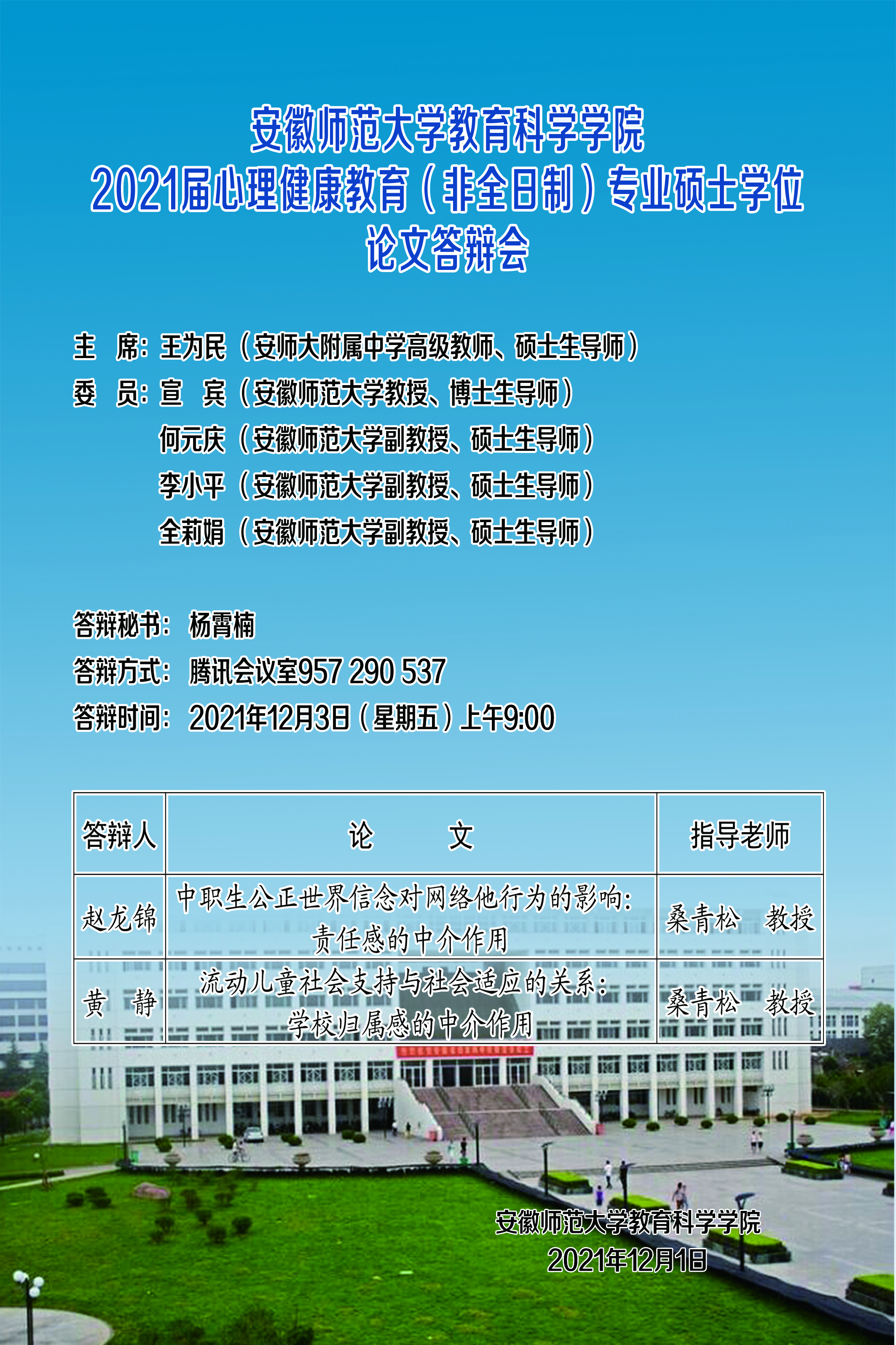 365英国上市官网2021届心理健康教育(非全日制)专业硕士学位论文答辩会