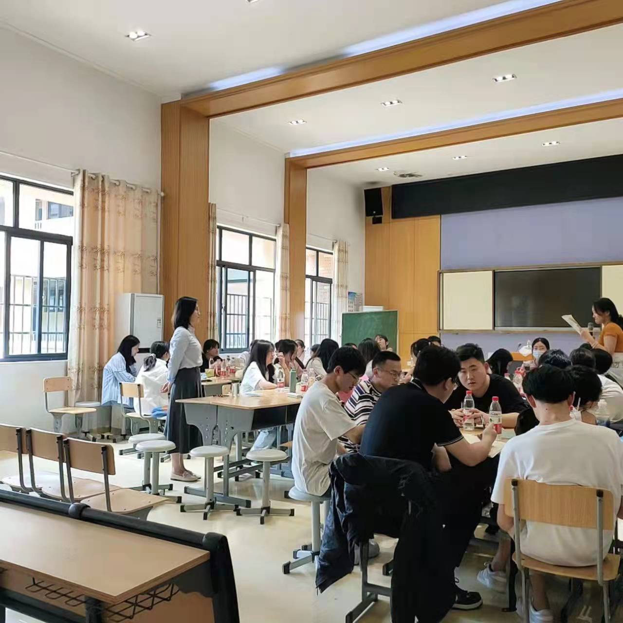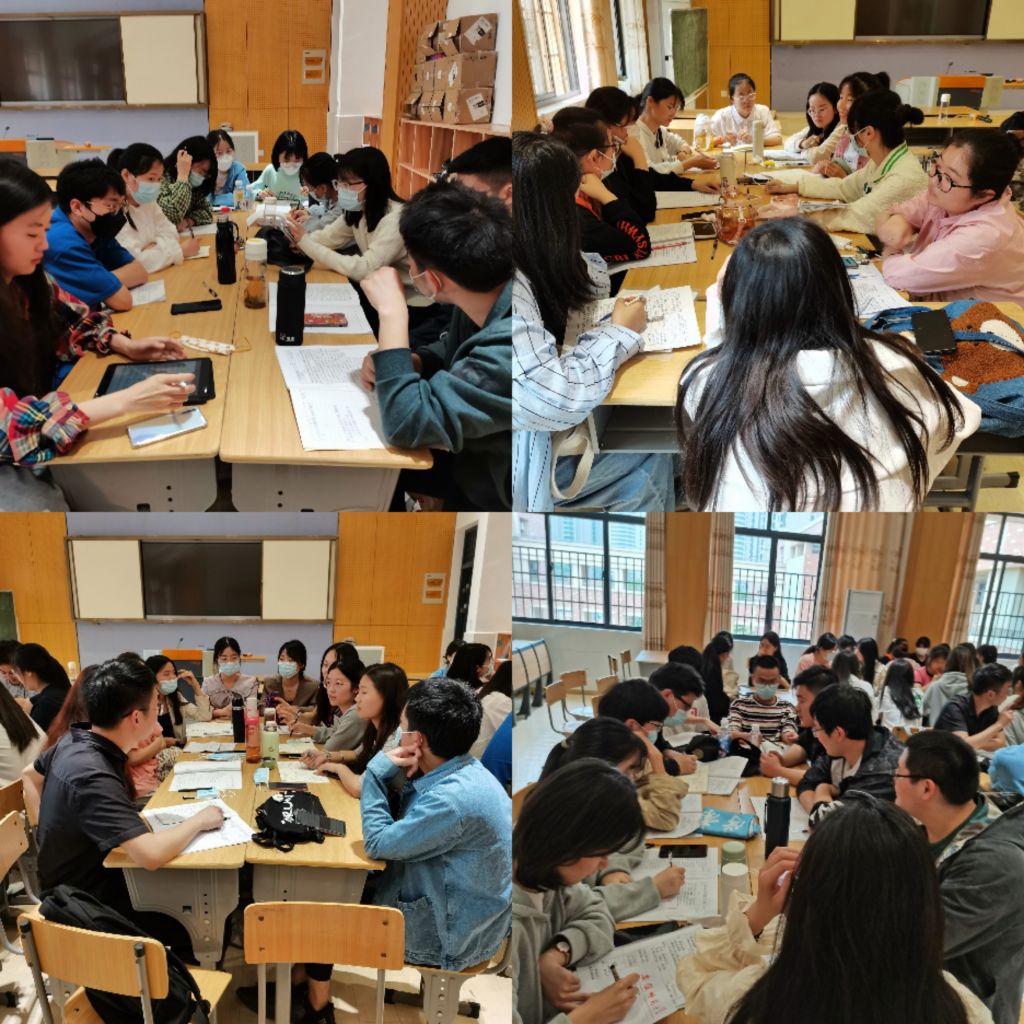 第三个环节是教学交流环节。中午,在班主任陈娜老师的组织下,同学们在报告厅以小组为单位展开评课交流活动。同学们结合自己的听课经历和反思进行激烈交流,五个小组分别派两名学生代表分享自己的评课,陈娜老师最后给予点评反馈。本次教研交流环节开阔了同学们对教学内容组织、教学方法选择等方面的视野,深化了同学们的教学反思,所有同学均受益良多。