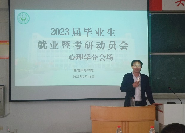 为动员和指导2023届本科毕业生更好地开展职业规划,认清就业形势,把握就业机会,提前进行考研规划与复习,5月18日,学院顺利召开2023届毕业生就业暨考研动员会,主会场会议结束后,心理学专业召开分会场会议,专业负责人王礼军主持,2018级心理学优秀学生代表、2019级心理学全体本科生参加。