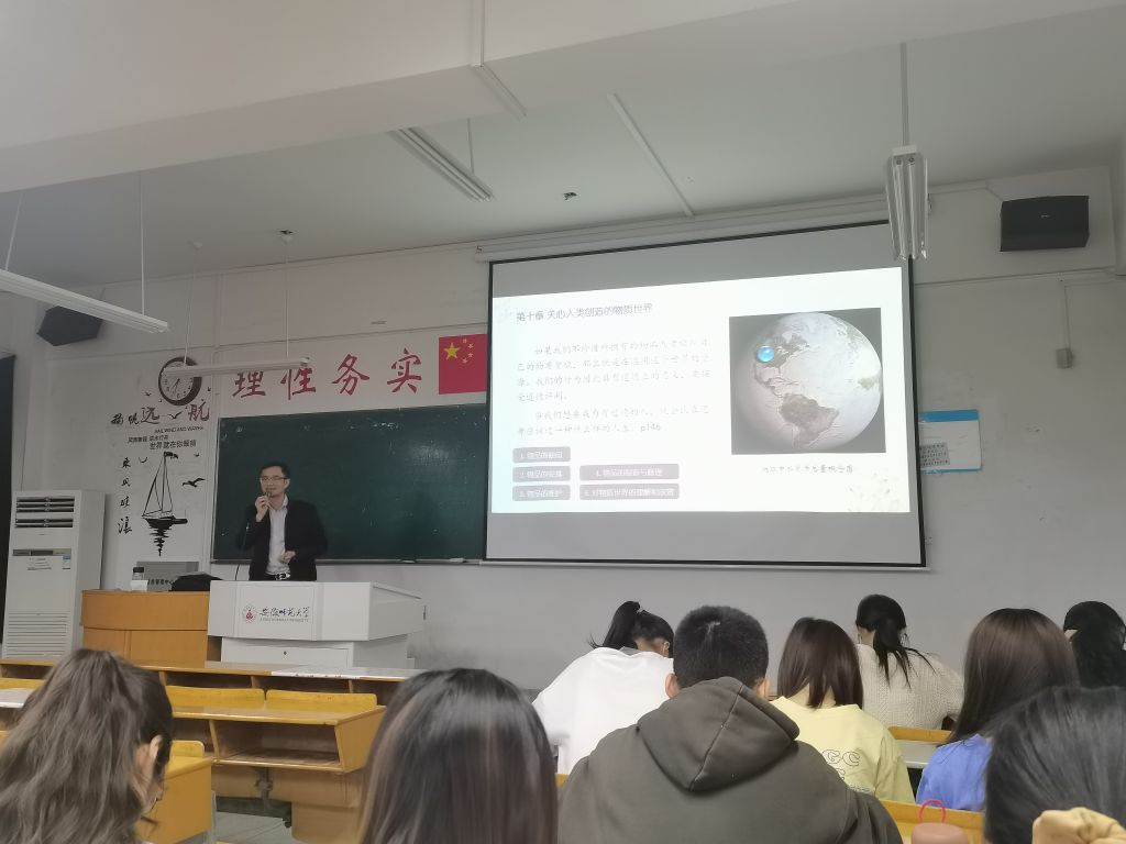 名著导读课程每周进行一次,共举行十周。课程主要由自主阅读、课堂分享交流、教师指导、内容延伸拓展四个部分组成。按照读书计划,学生课前进行自主阅读与思考,将自己的观点在课堂上进行充分的讨论交流,之后闵韡教师针对学生的问题答疑解惑,并进行知识的拓展与延伸,开阔学生的知识视野。
