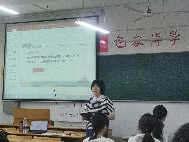 参赛选手赛前准备充分,根据自身情况选择了不同主题,涉及学科范围广泛,授课方式多样。如钱鑫授课《吨的认识》时语言幽默风趣,并结合生活实际,带领大家认识数学美;马祎曼的全英文教学流畅且富有感情,通过唱歌、借助教具等形式增加课堂教学的趣味性;纪升以铿锵有力的声音带领大家学习古诗《元日》,并对生字词进行详细讲解与板书;纪岚通过游戏活动的形式展开科学教学,带领大家深刻感受与认识太阳的位置和方向等。整场比赛过程中,选手们的教学思路清晰,语言生动精炼,教学内容丰富多彩,教学过程生动有趣,教学技能扎实牢固,板书美观合理,课堂魅力各具特色,赢得了评委老师和在场同学们的一致喝彩。