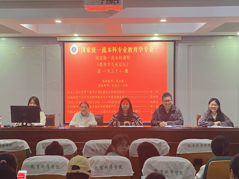 本次专业论坛张紫涵小组以暑期社会实践报告作为汇报主题,分别从教师资源配置、体育教师教学活动发展、学生流动及教师流动角度对乡村教育进行研究。第一位汇报人彭澜根据《城乡一体化背景下教师资源配置现状和途径探究》的主题展开论述,通过整理2016年至2022年间的相关文献,梳理已有研究热点、研究现状以及研究路径,并对未来研究方向作出合理展望。第二位汇报人葛帅晴以《双减政策下乡村体育教师教学活动开展的调查研究》为题,对“双减”政策下乡村体育教师的教学活动与教学积极性进行调查,并对教师自身能力发展与教育活动的关系展开分析。第三位汇报人张紫涵依照《农村小学学生流动情况分析——以X县Y村学校为例》的主题,从学生流失与学生回流两个方面出发,分析农村小学学生流动现状、特点和原因,探讨应对学生流失的相关对策。