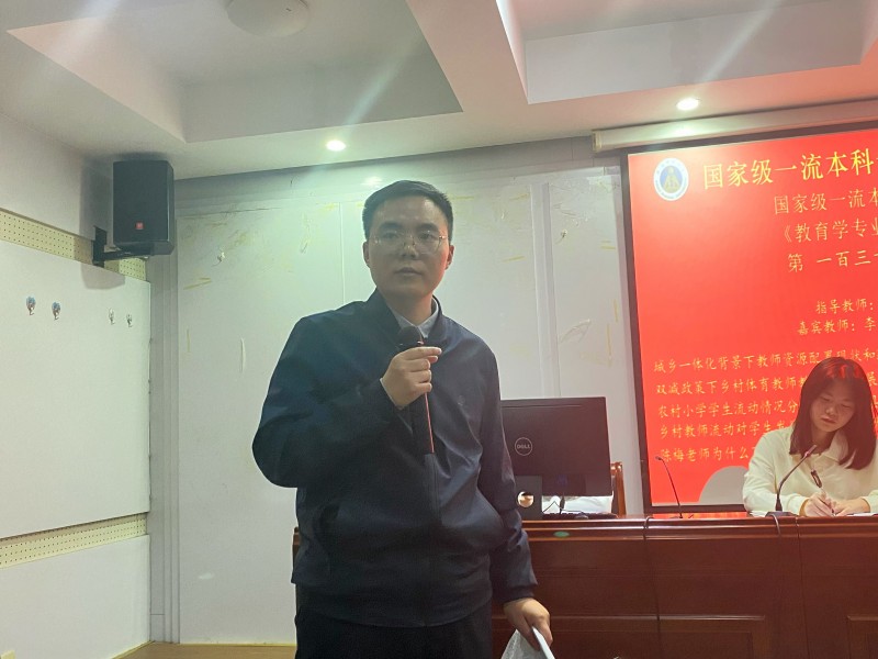 第四位汇报人胡镔以《乡村教师流动对学生发展影响的调查研究》为题,对处于教师流动制度下的学生进行访谈,并借助nvivo软件对访谈结果进行三级编码,探究教师流动对学生产生的影响。第五位汇报人王可围绕《陈梅老师为什么不走——一位留而不走的乡村教师的个案研究》这一主题,针对一个留而不走的乡村教师典型个案进行叙事研究,揭示乡村教师坚守的三个原因:教师职业成就感驱动、师生情感互动驱动、教师教育情怀驱动。