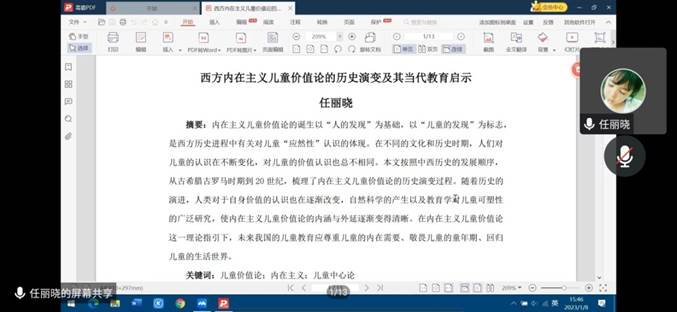 三、任丽晓同学—《西方内在主义儿童价值论的历史演变及其当代教育启示》