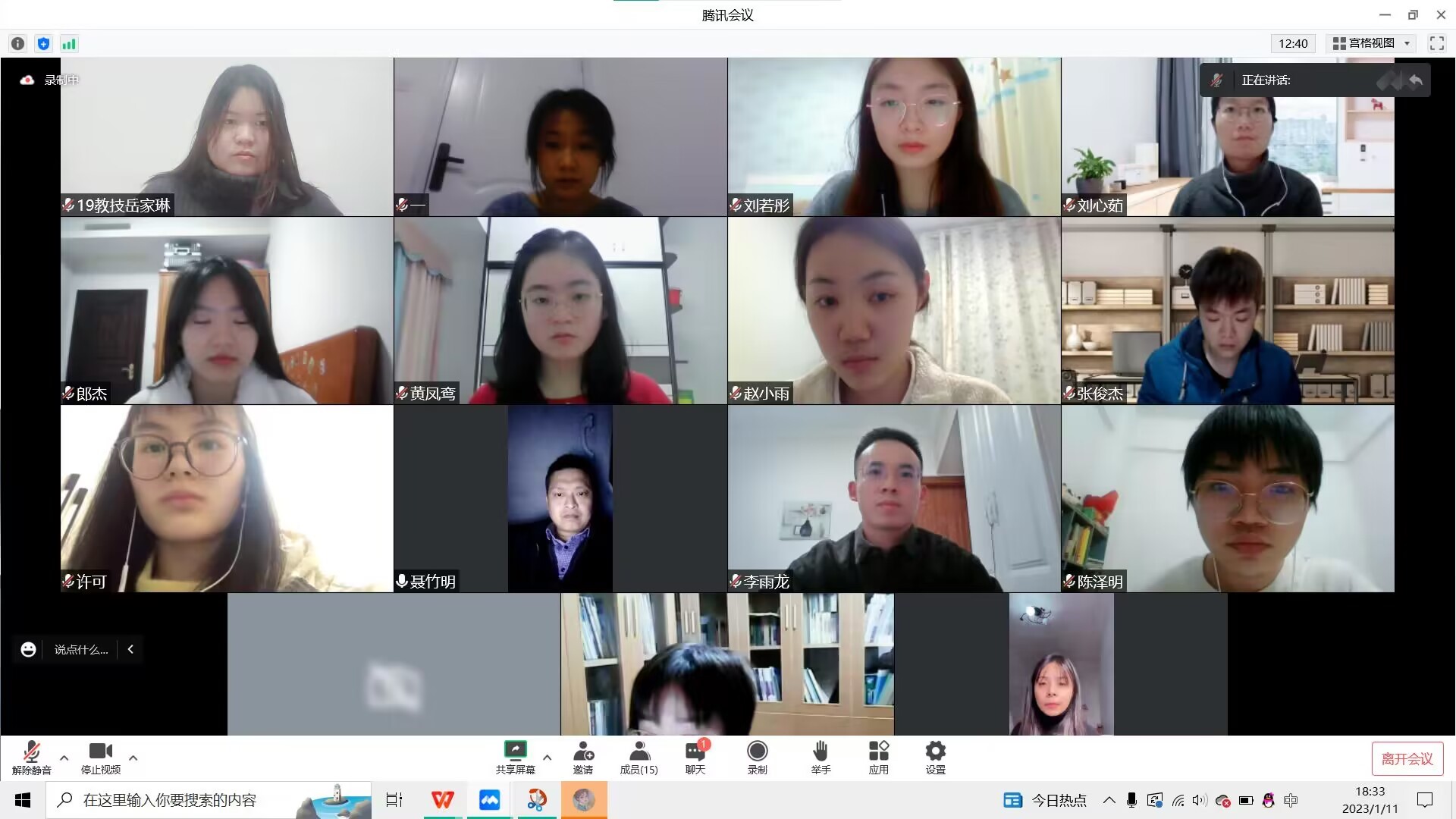 本网讯(教科院)为把毕业论文开题工作做细、做实,提升本科生毕业论文质量,1月10日下午、11日晚上,2023届教育技术学专业线上举行本科生毕业论文开题报告会。本次开题分三组进行,王清、张克松、聂竹明分别担任第一、二、三组组长,许之民、刘和海、袁晓斌、张帅、吴钦金、叶方舟出席本次报告会并担任指导老师。