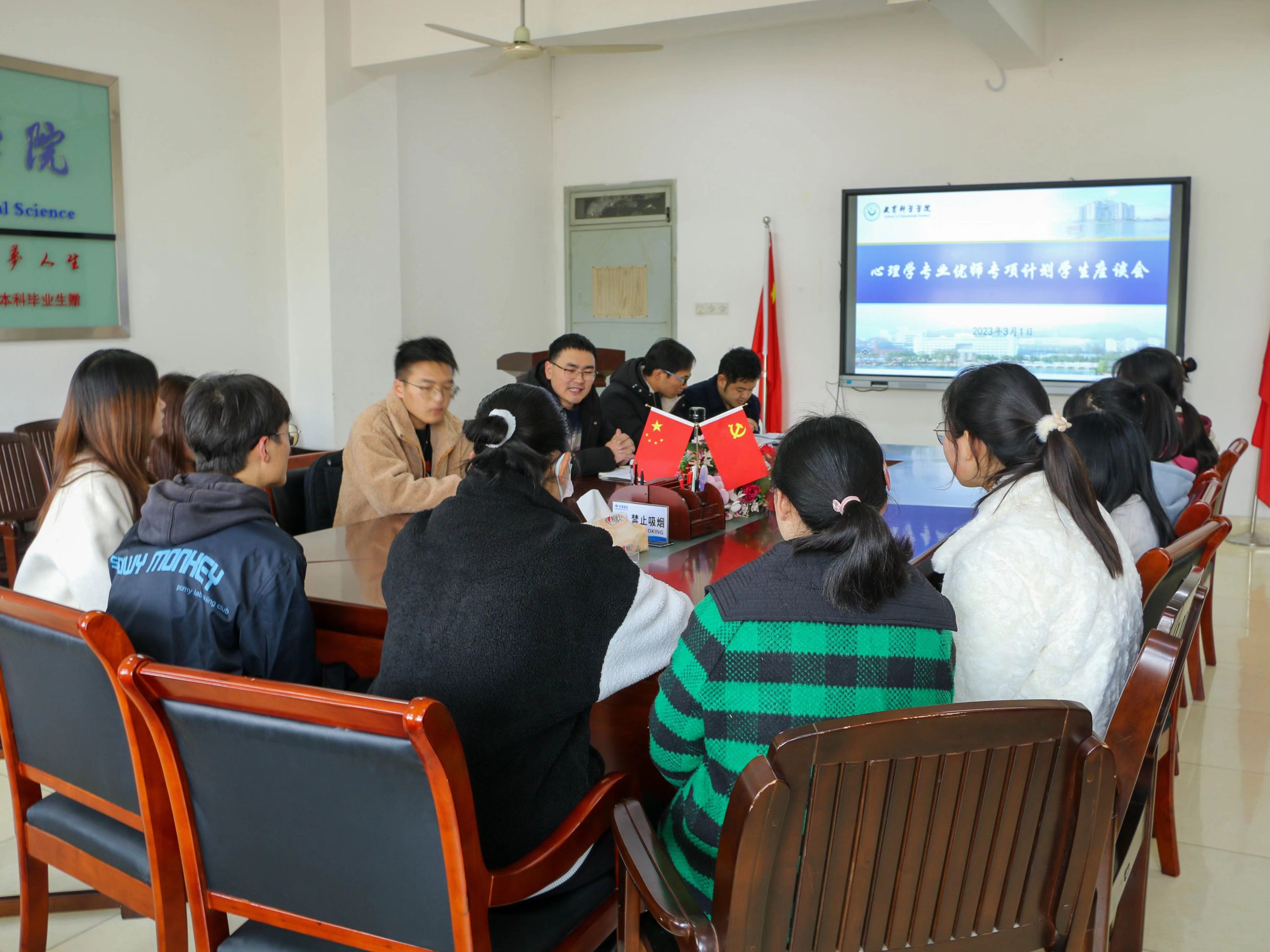 会上,韩建涛首先介绍了优师专项计划的开设背景及相关政策文件精神,重点强调了心理学专业优师专项对缓解地方心理健康教育师资短缺的特殊意义。他详细询问了同学们在学业及生活上遇到的困惑,表达了学院对同学们的关心和殷切期望。同学们纷纷表达了自己对心理学专业的想法、未来三年的学习规划以及在专业学习当中遇到的问题,他们表明自己非常喜欢心理学专业,会在今后努力提升专业能力、教学技能以及自我素养;提出了关于优师专项个性化培养方案设置,以及就业方向、后续考研等方面的问题。听完每位同学的发言后,与会老师们针对同学们关切的问题做了反馈和解释。
