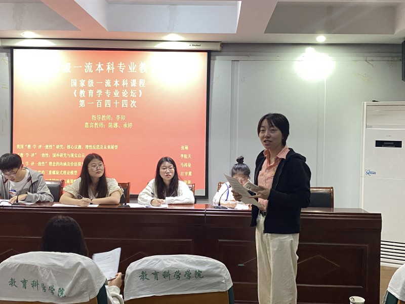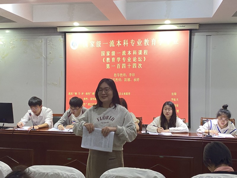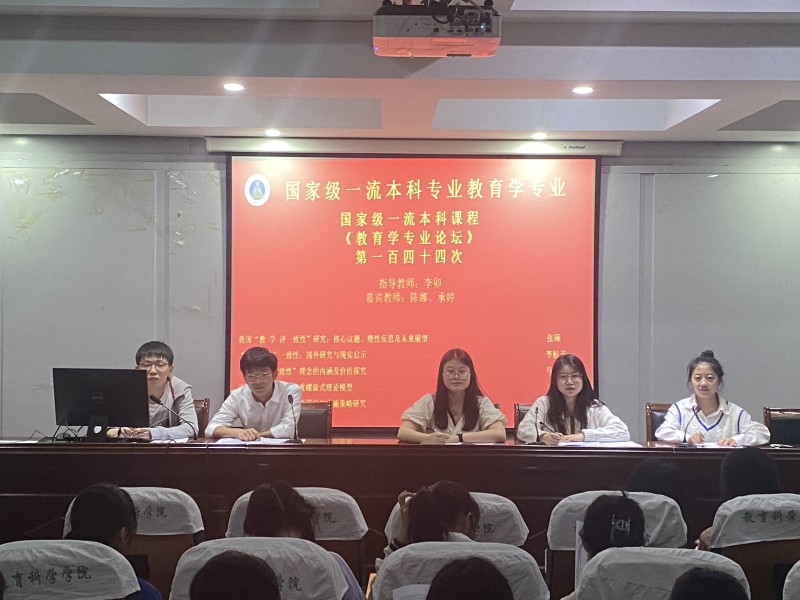 本网讯(文/谢雅雯 乔琳颖 图/谢雅雯)4月16日晚,在365英国上市官网三楼学术交流中心,国家级一流本科专业建设点教育学专业第一百四十四次专业论坛成功举办。莅临本次专业论坛有嘉宾教师陈娜、承婷,20级、21级教育学专业全体本科生到场参加,并由20级教育学张紫涵担任主持人。