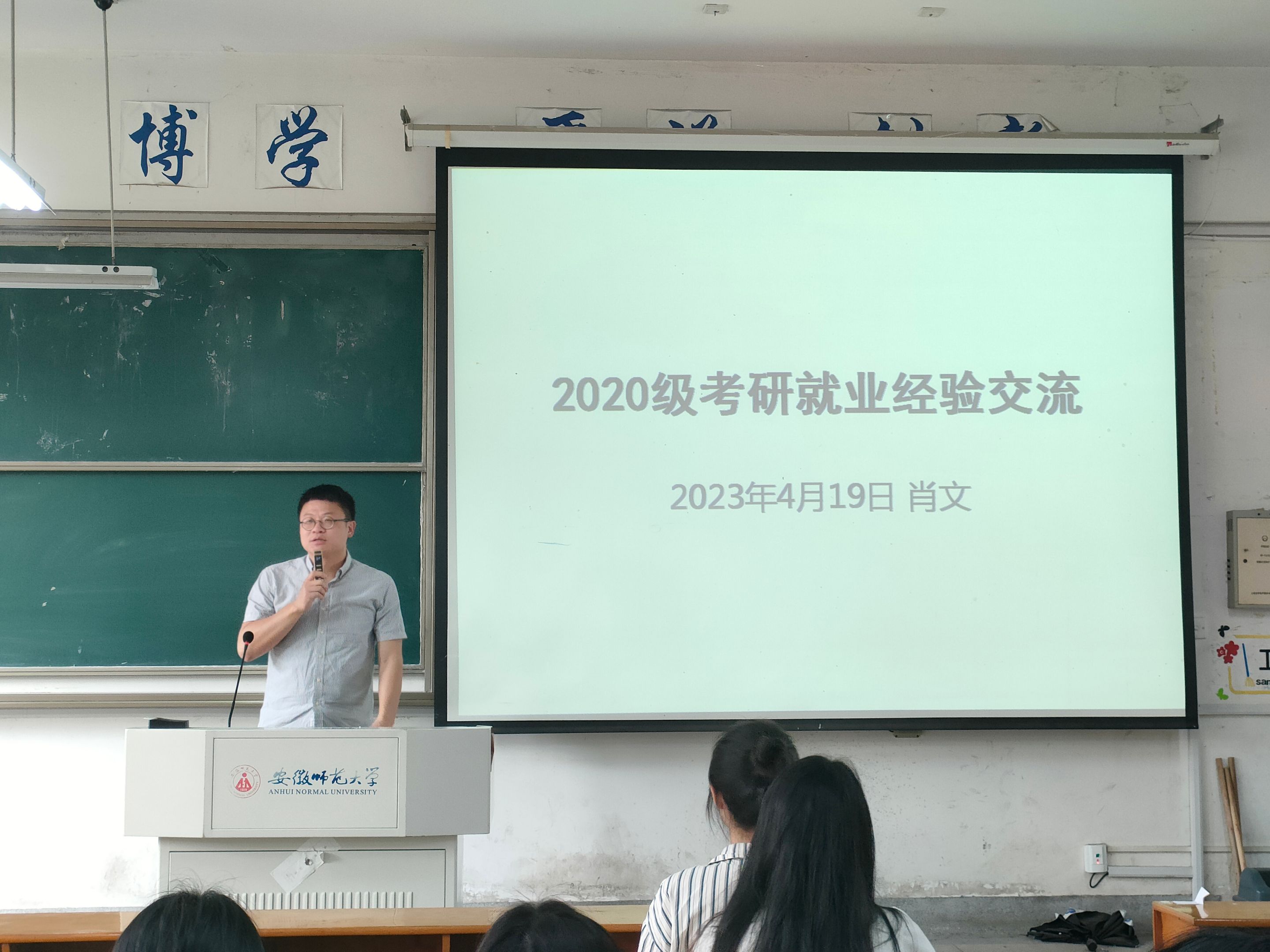 会上,专业负责人肖文向20级本科生介绍了19级教育技术学考研的基本情况,并结合自身经历,从“科学报考、扎实准备、交流分享”等方面对20级本科生考研就业提出了建议。
